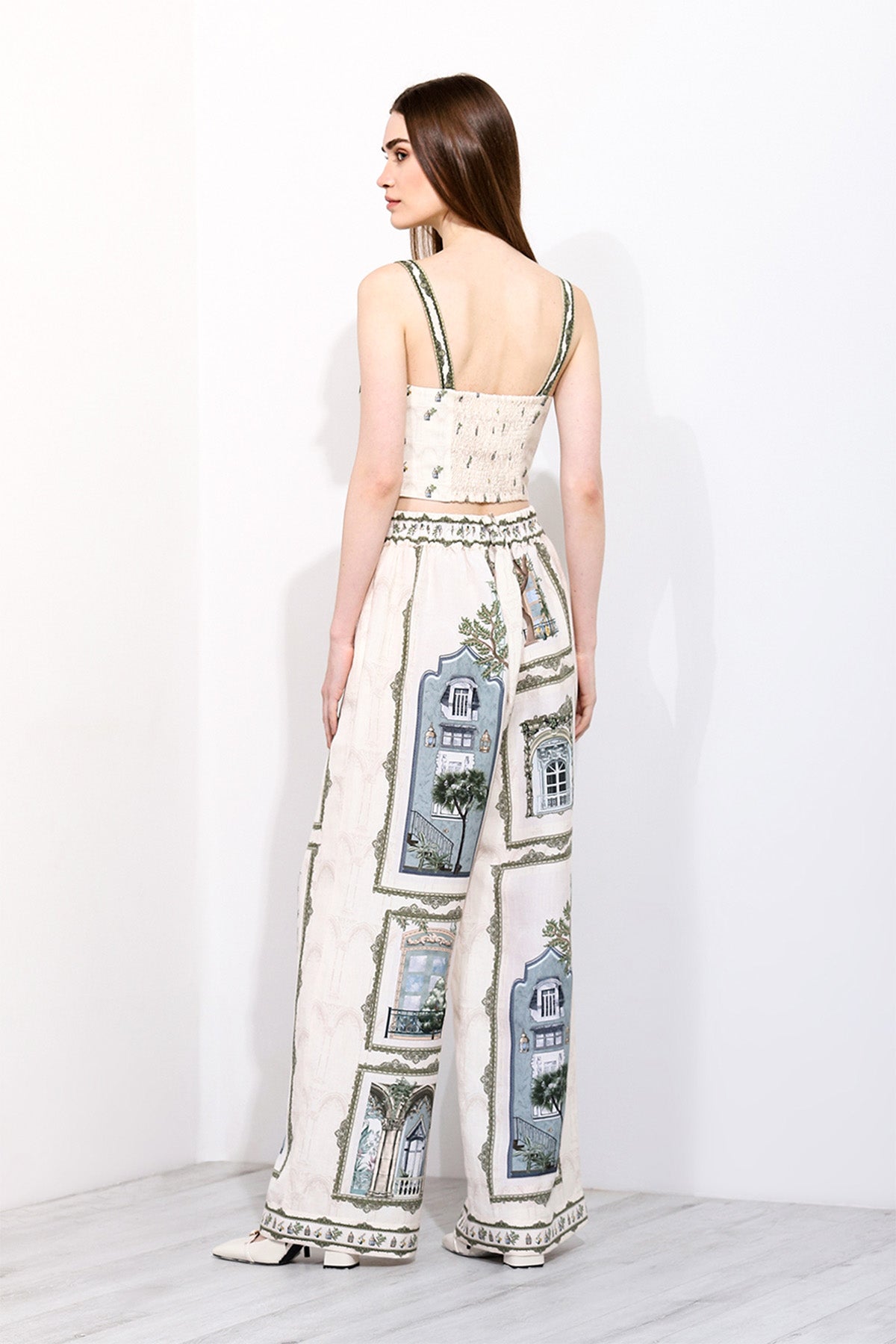 Discover elegance with the ARIANNA BUSTIER by Ranna Gill. Crafted from a premium linen blend fabric, this bustier features the captivating "Windows of the World" print. The tailored fit and refined design create a sophisticated silhouette, perfect for both casual and formal occasions. With its rich textures and neutral base, this versatile piece enhances any outfit.