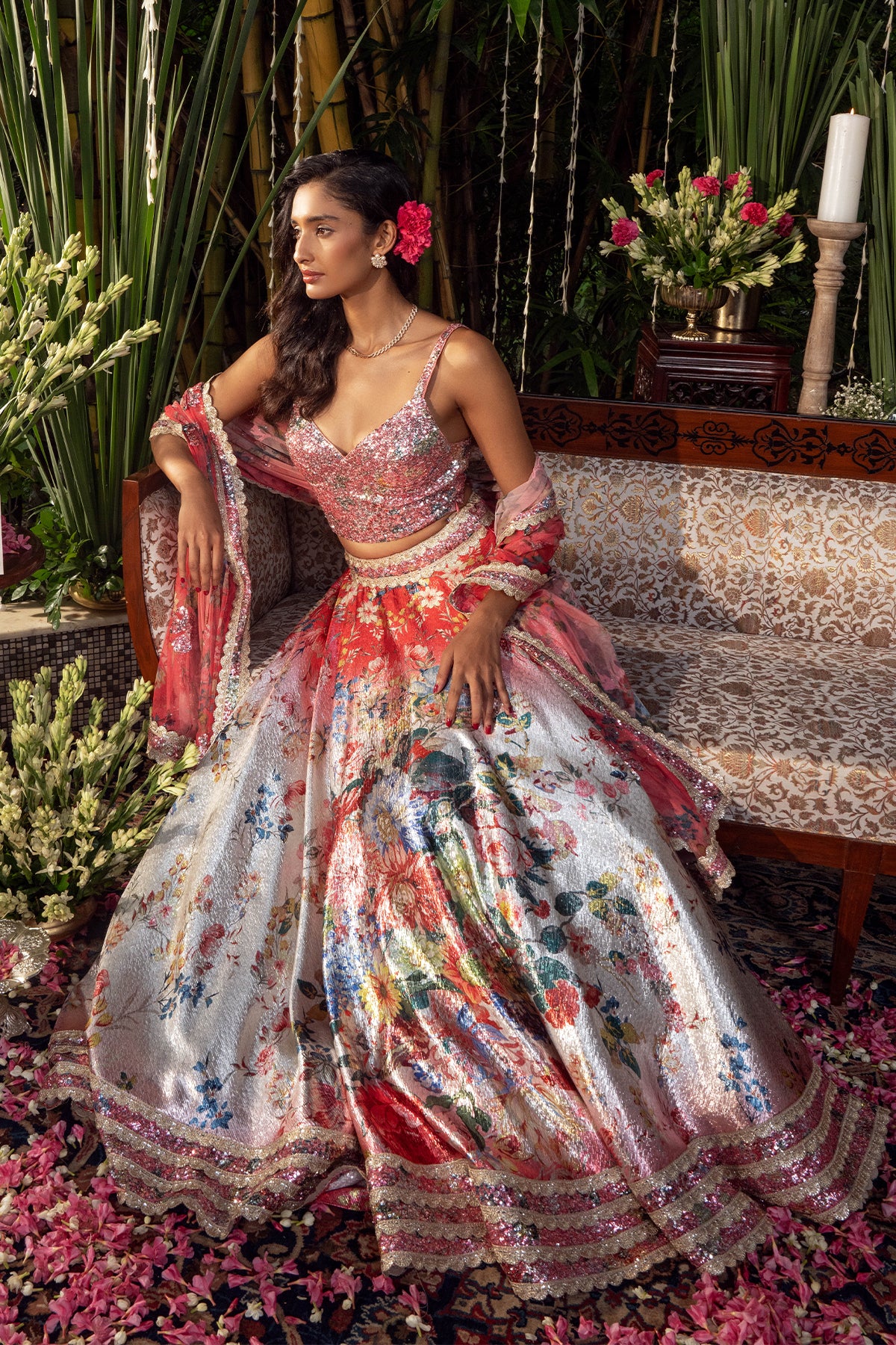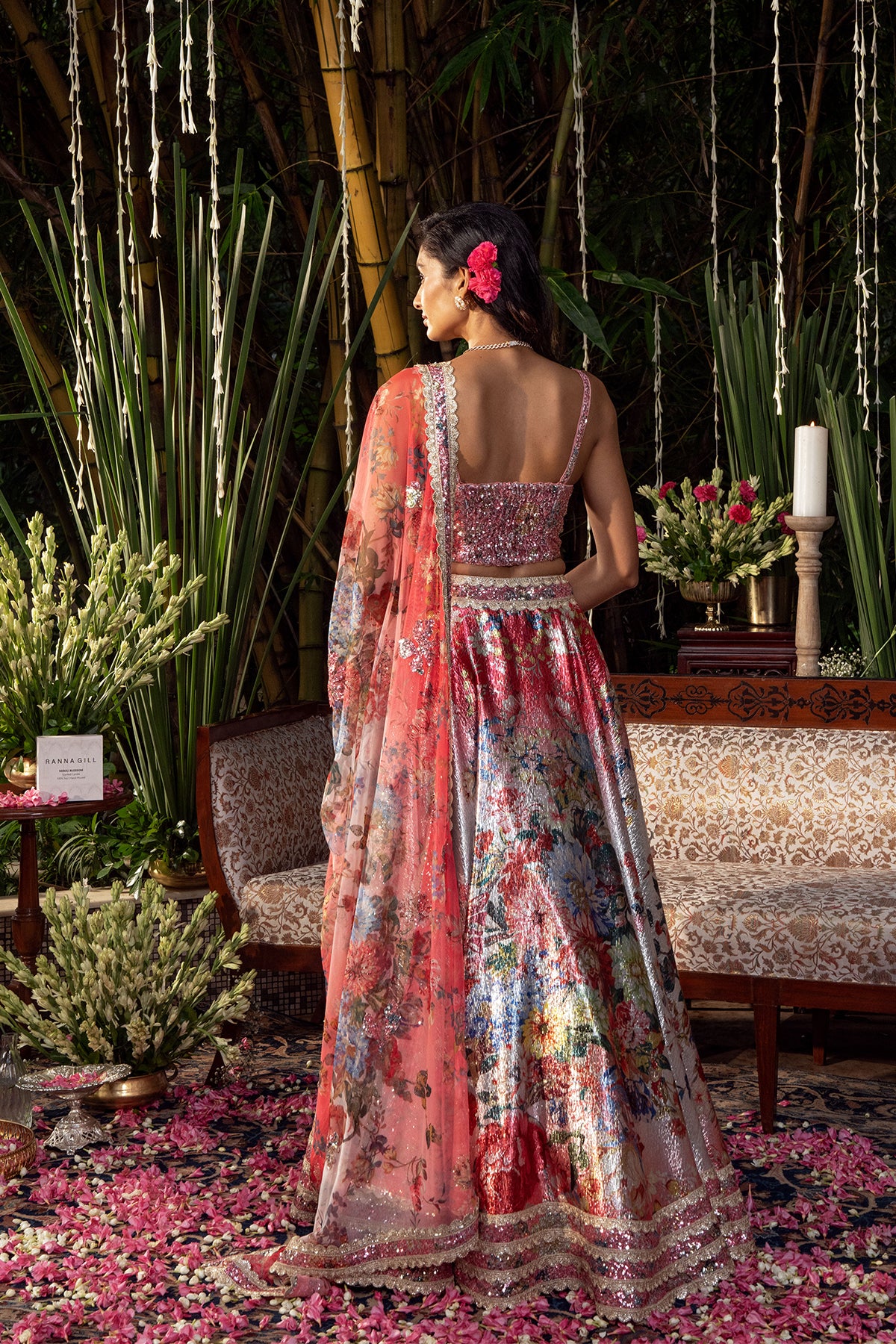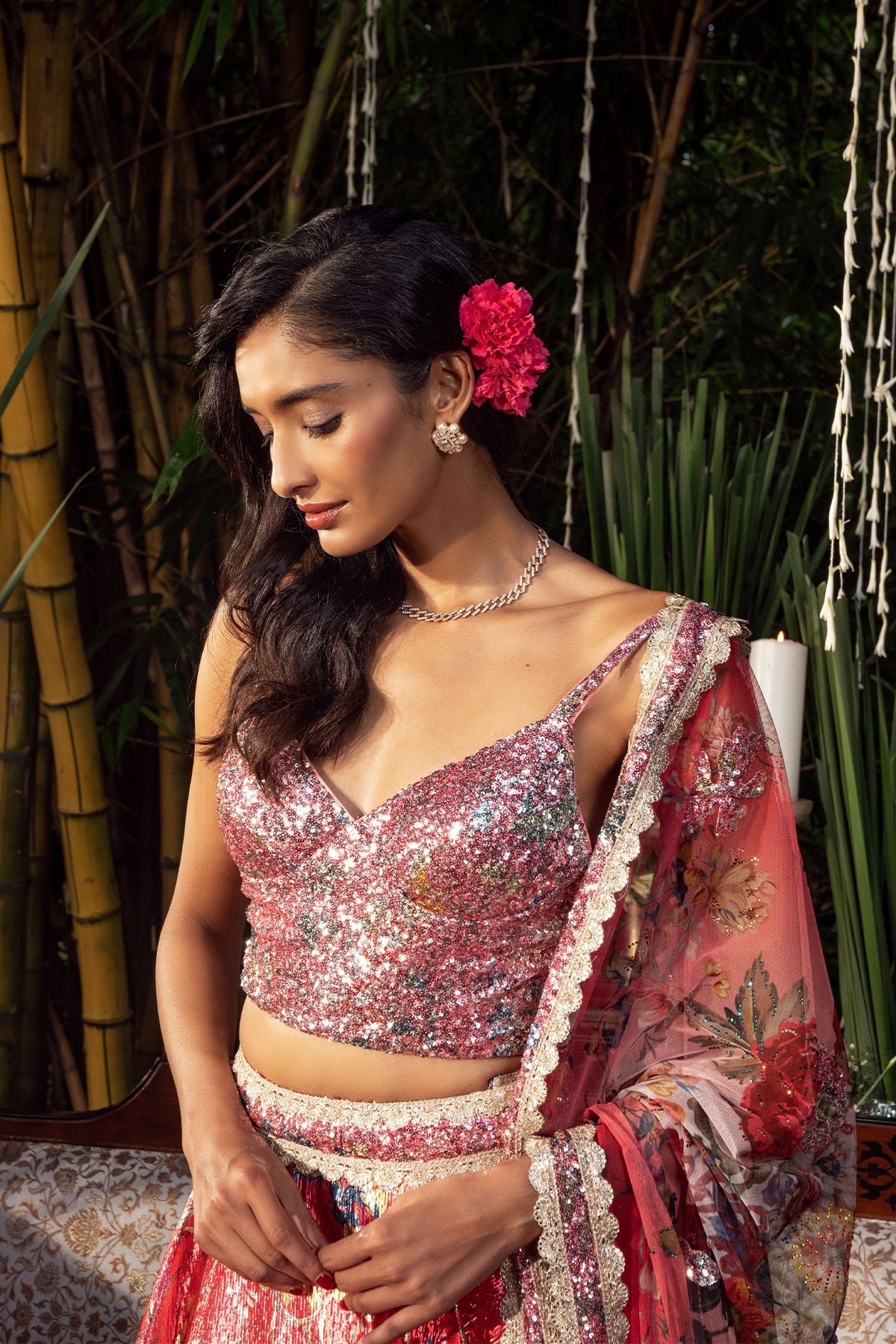 Iridiana Sequin Bustier and Floral Lehenga Set