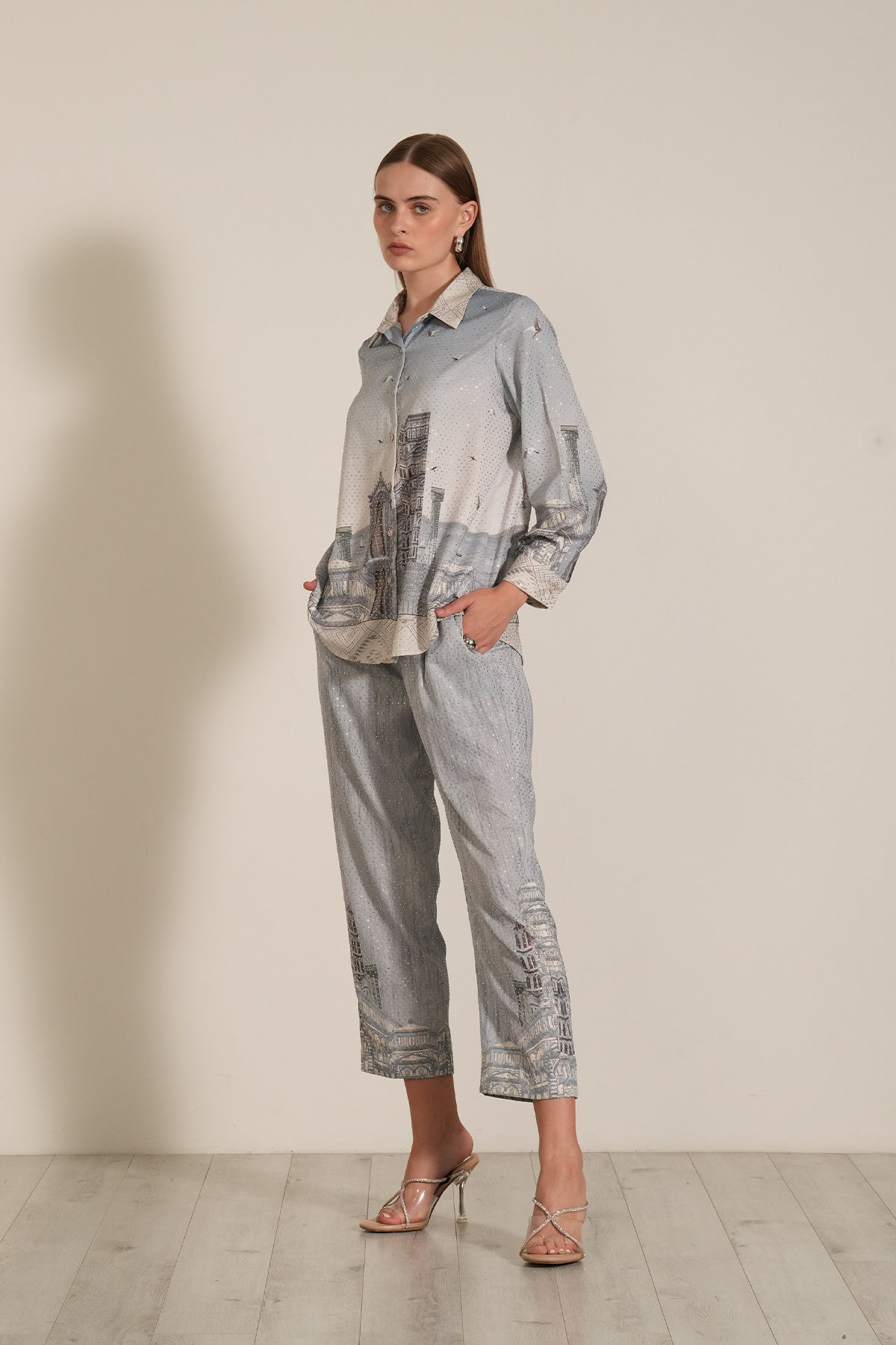 Introducing the Nicole Button Down Shirt & Pants, where classic meets contemporary in a seamless blend of style and versatility. Crafted with meticulous attention to detail, this shirt embodies timeless sophistication with a modern twist. The crisp button-down silhouette offers a refined look, while the rhinestone embellishments adds a touch of elegance. Elevate your wardrobe with this essential piece that seamlessly transitions from day to night, adding a touch of refinement to every ensemble.