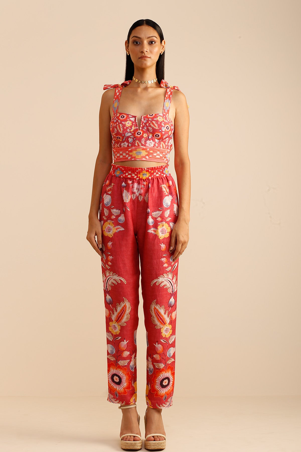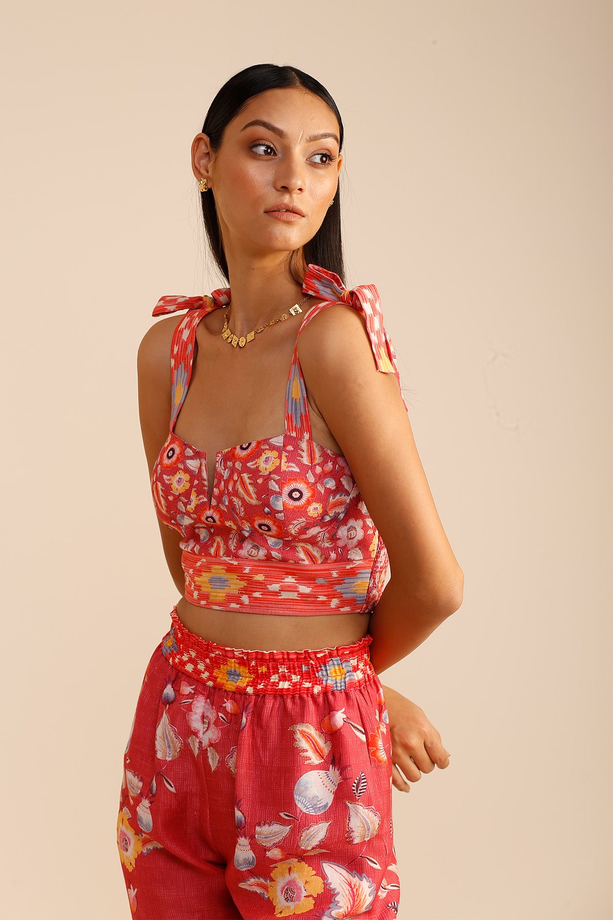 The Sasha Corset, a stunning piece that will elevate your style game. Crafted from luxurious Linen Satin fabric, this corset showcases a captivating coral color that is sure to make a statement. The STRAPPY square neckline brings a modern and alluring element. Designed in a draped style, this corset paired with a wide leg pant effortlessly combines elegance and fashion-forwardness. Adorned with a painterly florals print, it exudes a sense of artistry and grace.