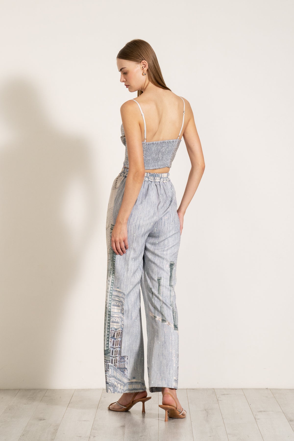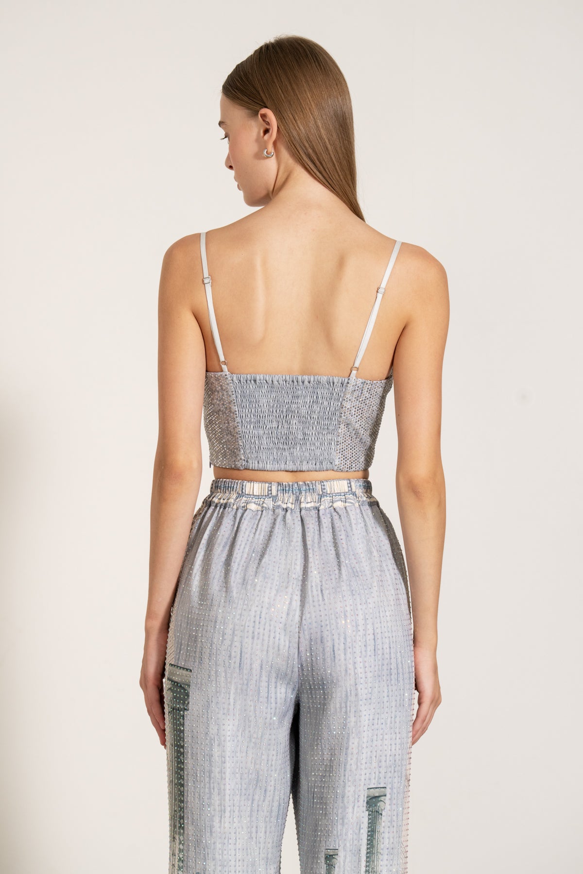 Make a statement in Ranna Gill's bedazzled SERATA CORSET featuring the signature Venice print. The intricate design captures the essence of timeless elegance. Crafted with a premium Crepe Blend fabric ensuring all-day comfort.